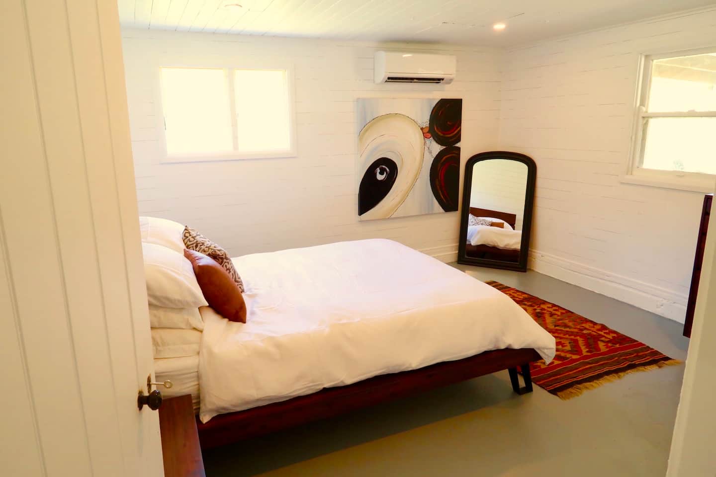Renovated Dairy Bails with beautiful views over rolling hills to Sphinx Rock and large 3 tier Waterfall on property. Nestled in a pristine 180 acre estate a short 3km drive from Nimbin Village. 5 star luxury fit-out, living room flows to large covered deck with designer outdoor dining and lounge to take in the stunning Nimbin sunsets.