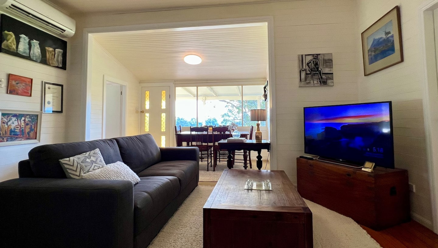 Spectacular viewing deck over to Nimbin Rocks, village and valley. Natural spring water, new rc aircon, fast WiFi (80mbps). Extremely private with own access road.
