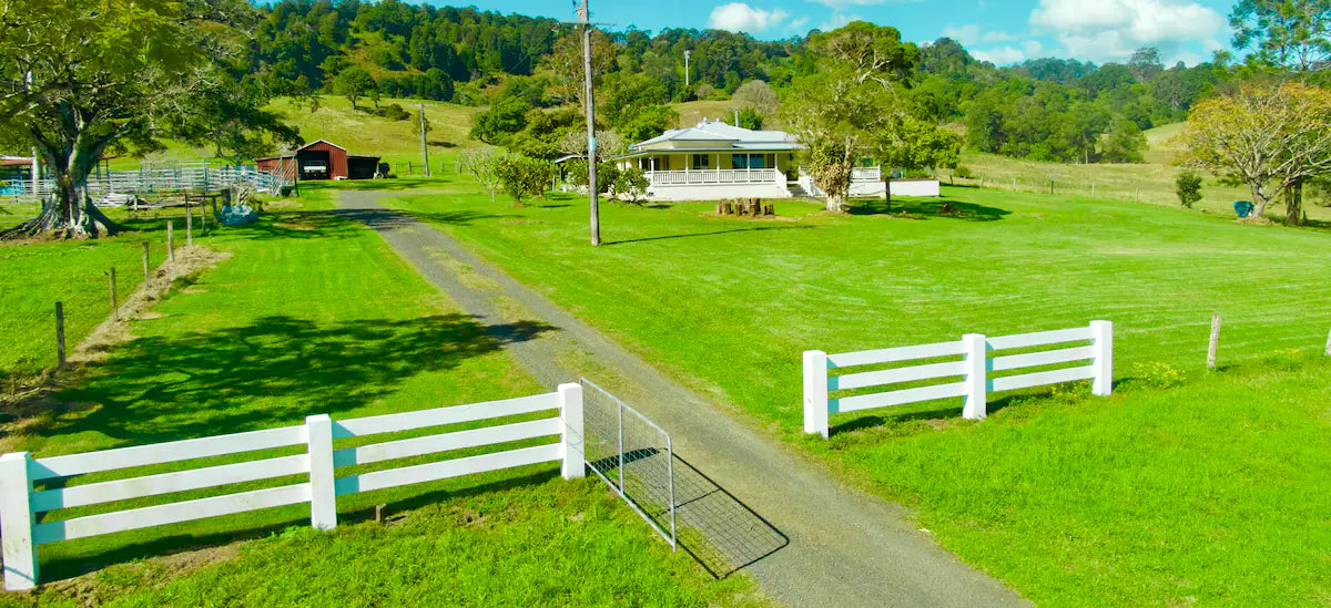 Welcome to the Nightcap Ranch, a serene estate nestled on 180 acres of lush landscapes in the heart of the beautiful Northern Rivers of New South Wales. This unique farm stay invites you to experience the charm of rural life with all the comforts of a classic Queenslander homestead, surrounded by acres of manicured lawns. Wander through picturesque fields, explore five crystal lined pristine waterways, and marvel at the stunning waterfalls that dot the property.